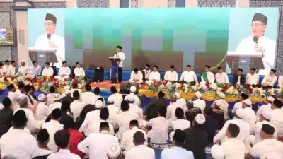 Wakil Menteri Agama RI, Dr. KH. Romo. R. Muhammad Syafi’i, S.H., M. Hum., dalam sambutannya menyampaikan apresiasi atas kegiatan doa bersama ini dan menekankan pentingnya mendekatkan diri kepada Allah SWT dalam menghadapi berbagai tantangan. Beliau juga menyampaikan bahwa Presiden RI sangat memperhatikan rakyat Indonesia dan ingin membangun Indonesia menjadi lebih baik.