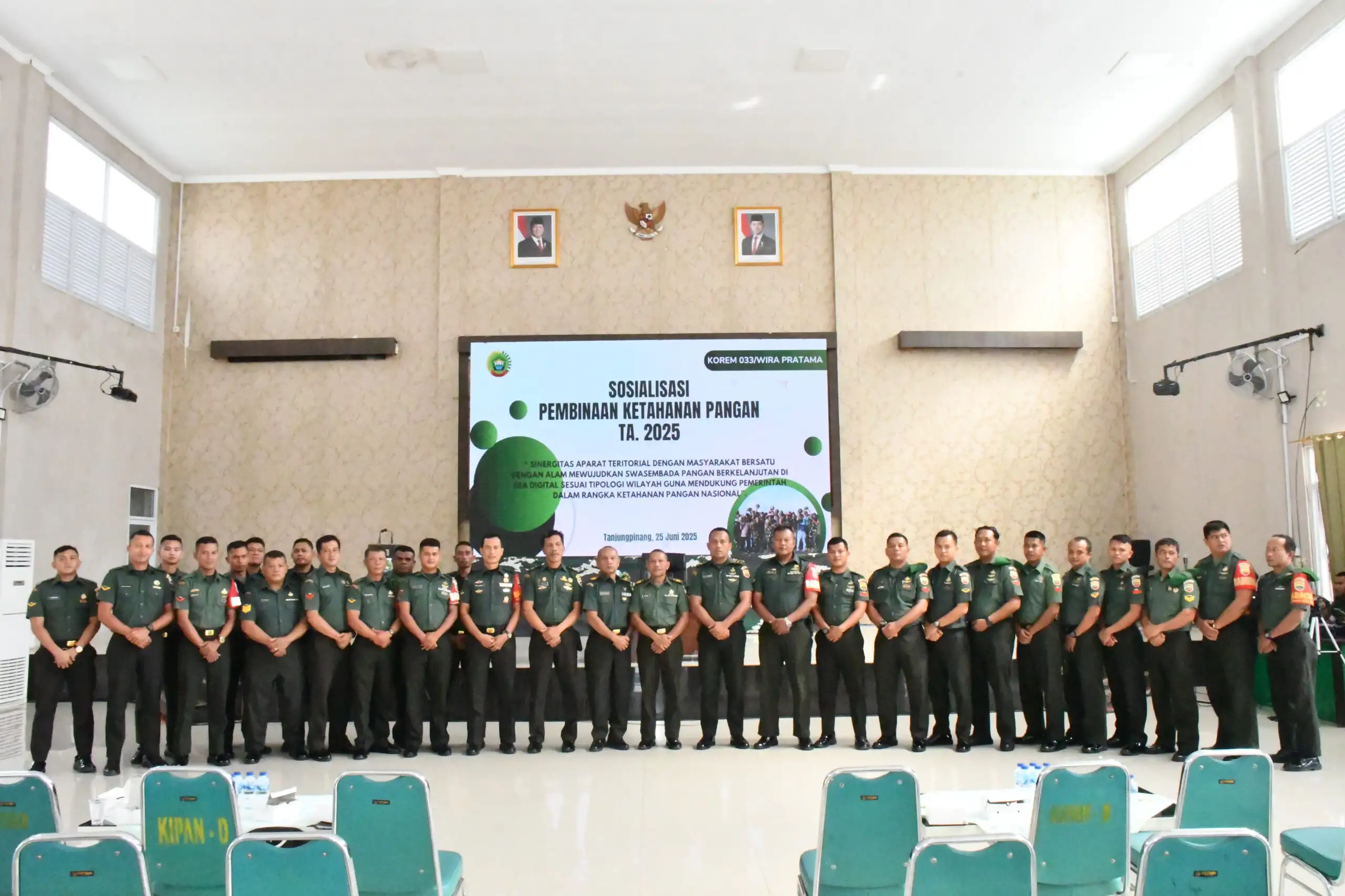 Tanjungpinang- Komandan Korem 033/WP Brigjen TNI Bambang Herquetanto, M.Han Yang dalam hal ini diwakili oleh Kepala Seksi Teritorial (Kasiter) Kasrem 033/Wira Pratama Kolonel Inf Joni Eko Prasetyo, S.IP, melaksanakan sosialisasi pembinaan ketahanan pangan kepada jajaran prajurit TNI guna mewujudkan ketahanan pangan di wilayah ini.Bertempat di Gedung Serba Guna Makorem 033/WP. Rabu (25/06/2025).